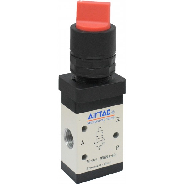 Distribuitor 3/2 seria 200 G1/4 cu actionare tip selector culoare rosie