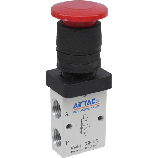 Distribuitor 3/2 seria S3 G1/4 actionare cu buton tip ciuperca culoare rosie