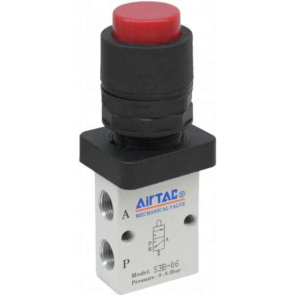 Distribuitor 3/2 seria S3 G1/8 actionare tip buton proeminent culoare rosie