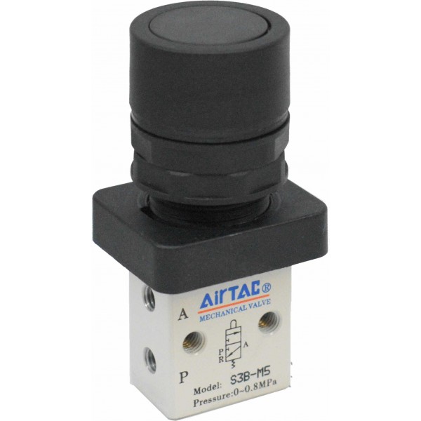 Distribuitor 3/2 seria S3 M5 cu actionare tip buton ingropat culoare neagra