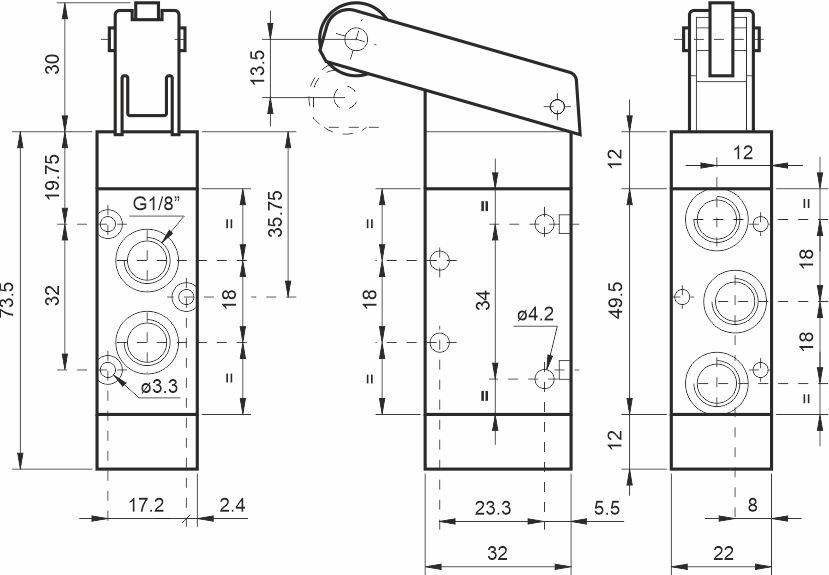 Microvalve cu buton 3/2 (normal inchis sau normal deschis) cu diferite tipuri de actionari, mecanice sau manuale. Folosind adaptorul pentru butoane, toate microvalvele pot fi montate in panou. Prin combinarea a 2 microvalve este posibila obtinerea schemelor de functionare 5/2 cat si 5/3