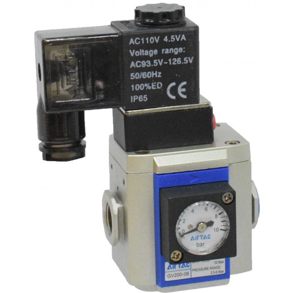 Valva pornire lenta 1/4" cu bobina si conector cu led prezenta tensiune 110VAC