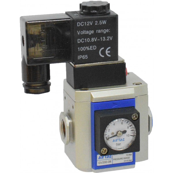 Valva pornire lenta 1/4" cu bobina si conector cu led prezenta tensiune 12VDC