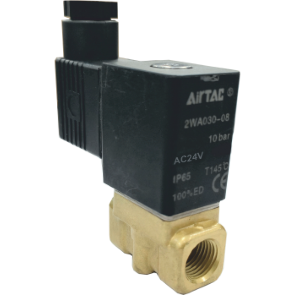 Vana control fluide din alama apa/aer/ulei normal inchisa 1/4" orificiu 3 mm cu bobina si conector - 24VAC